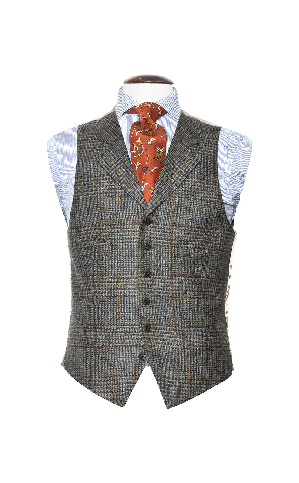 Option: Gilet droit à six boutons, quatre poches & revers de col.