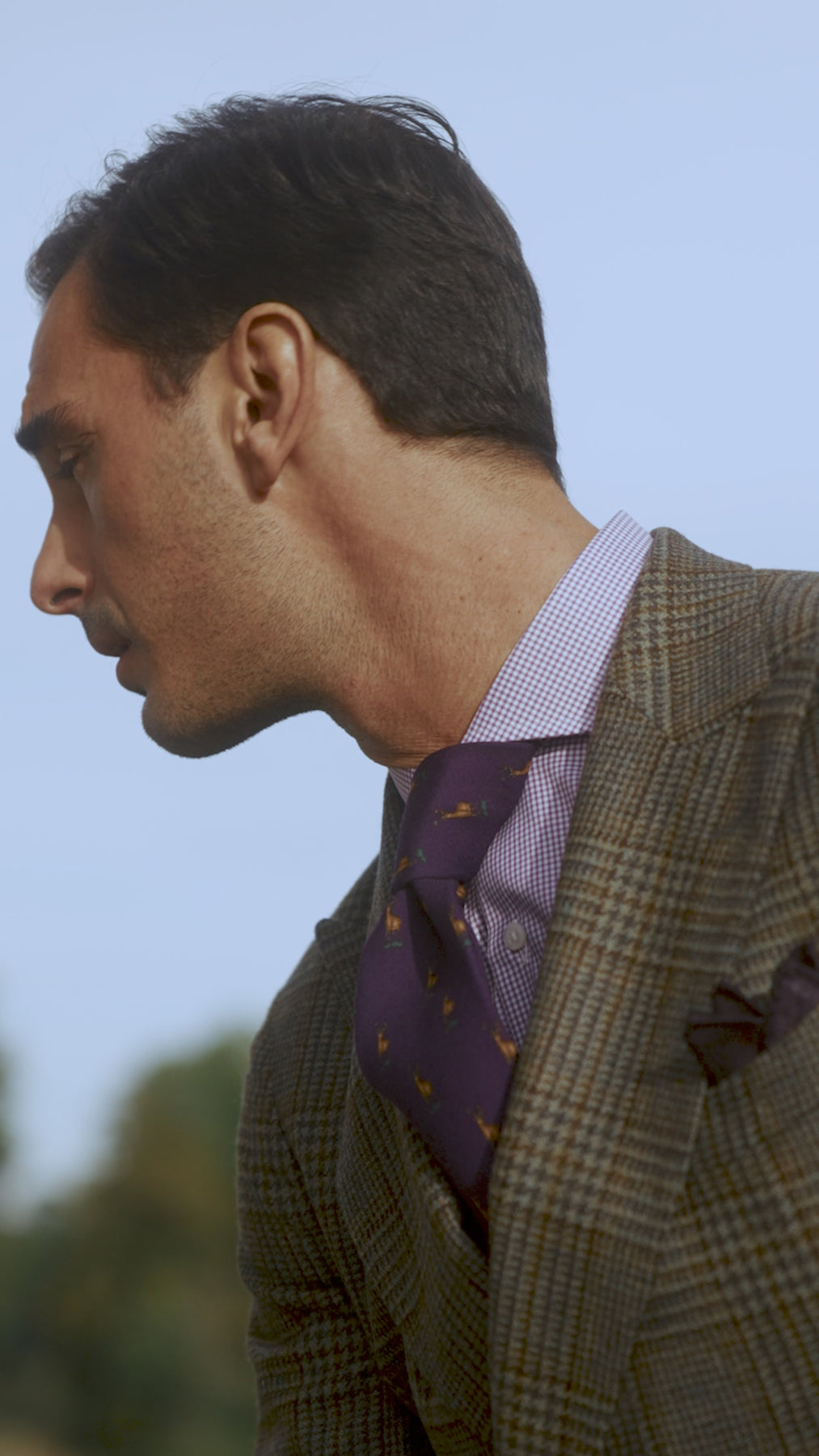 Tissu "Prince de Galles" bronze à contre carreaux,