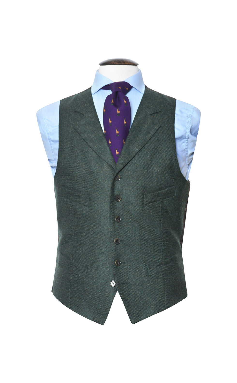 Option : Gilet droit à six boutons, quatre poches & revers de col.